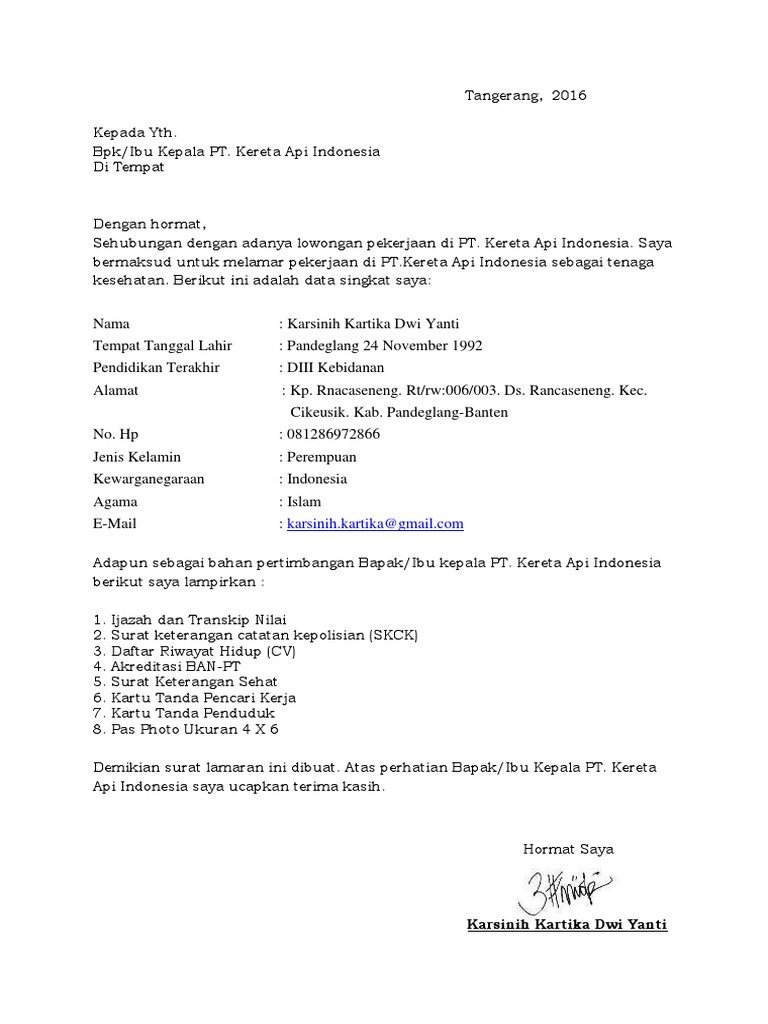 Salah satu informasi yang paling sering dicari di internet adalah informasi lowongan pekerjaan. Contoh surat lamaran kerja pt kai persero. Kepada yth ahmad zakaria, se. Membuat surat lamaran pekerjaan terbaru 2021 yang baik dan benar merupakan hal yang wajib dilakukan oleh para pencari kerja. Di bawah ini, kami telah menyediakan berbagai contoh surat lamaran kerja yang baik dan benar.